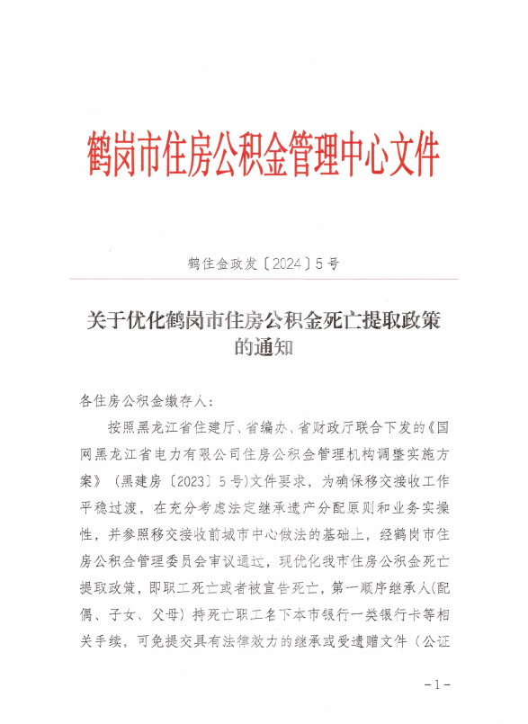 关于优化鹤岗市住房公积金死亡提取政策的通知
