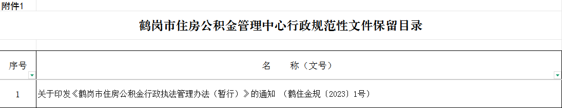 鹤岗市住房公积金管理中心行政规范性文件,共1件,拟保留1件。
