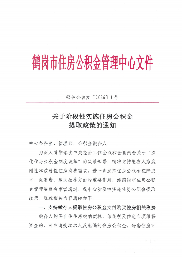 关于阶段性实施住房公积金提取政策的通知
